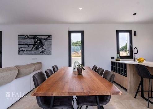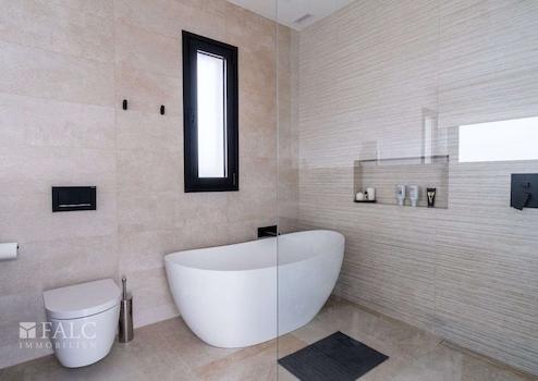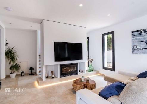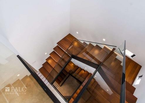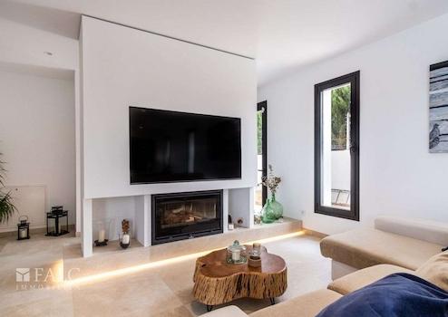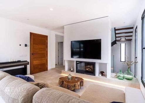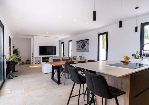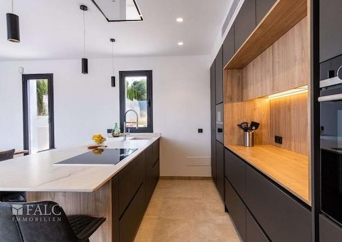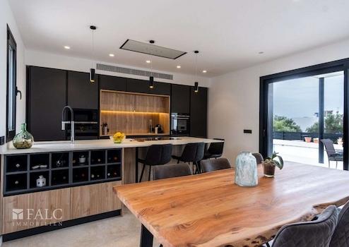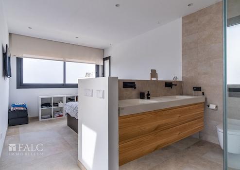 In einer ruhigen, familiären Gegend von Marratxí gelegen, präsentieren wir diese fantastische, Neubau-Villa in Vinyas de Son Veri. Die ausgezeichnete Immobilie ist mit den neuesten Qualitäten ausgestattet und verfügt über einen erfrischenden Salz-Infinity-Pool, der von einer wunderschönen Terrasse mit Veranda umgeben ist. Die Villa bietet eine grosszügige Wohnfläche von ca. 195 m2, die sich wie folgt aufteilt: Im Hauptgeschoss befinden sich ein gemütliches und geräumiges Wohn-/Esszimmer mit integrierter moderner Küche, ein Doppelschlafzimmer und ein komplettes Bad mit Dusche. In der ersten Etage erwartet Sie das Hauptschlafzimmer mit Bad en-suite, das über eine Dusche und eine herrliche Badewanne verfügt, in der Sie die schöne Aussicht auf die Insel geniessen können. Zusätzlich gibt es 2 Doppelschlafzimmer und ein komplettes Badezimmer, welches sich in der Mitte der beiden Zimmer befindet. Alle Räumlichkeiten sind durch eine grosse Terrasse miteinander verbunden. Im Keller befinden sich der Maschinenraum, die Garage sowie ein kleines Wohnabteil. Extras: Fussbodenheizung durch Aerothermie, doppelt verglaste Fenster, installierte Alarmanlage, Klimaanlage und Holzkamin. Das Haus ist von einem Ende zum anderen mit Sate isoliert. Es befindet sich in einer ruhigen Lage, nur wenige Fahrminuten von Palma entfernt, wie auch von Schulen und den nahe gelegenen Sandstränden mit türkisfarbenem Wasser.