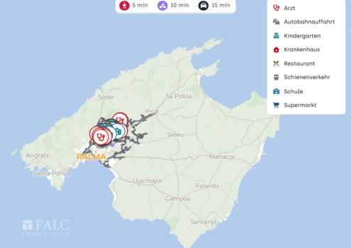 Die Anbindung ist ein klarer Pluspunkt. Eine Bushaltestelle liegt fußläufig, der Bahnhof Marratxí ist ebenfalls in der Nähe und bietet gute Verbindungen in Richtung Palma und ins Inselinnere. Mit dem Auto erreichen Sie die Autobahnauffahrt in wenigen Minuten. Der Flughafen Palma de Mallorca ist je nach Verkehr in etwa 25 Minuten erreichbar.