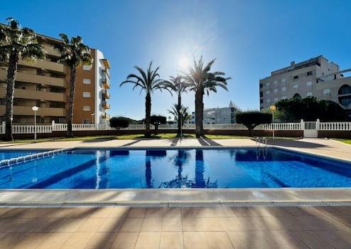Sie bietet Klimaanlage und Heizung, es ist ein Gemeinschaftspool vorhanden und es gibt zwei private Stellplätze.