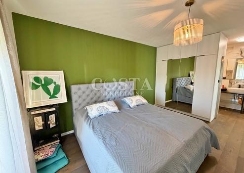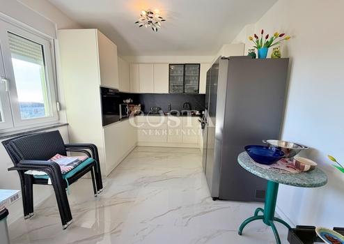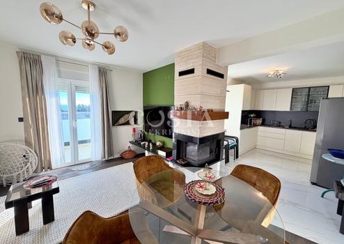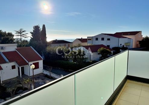In Petrčane bei Zadar steht eine modern möblierte Wohnung mit Meerblick zum Verkauf. Die 77,06 m² große Wohnung befindet sich im ersten Stock eines kleinen Mehrfamilienhauses mit sechs Wohneinheiten. Sie besteht aus einem geräumigen Wohnzimmer, einer Wohnküche, zwei Schlafzimmern, zwei Badezimmern und zwei Balkonen. Die Wohnung ist vollklimatisiert, und Wohnzimmer und Küche verfügen über Fußbodenheizung. Sie ist mit hochwertigen Haushaltsgeräten ausgestattet. Der Boden ist mit hochwertigem Parkett ausgelegt, die Fenster und Türen sind aus PVC. Zur Wohnung gehört außerdem ein Stellplatz im Innenhof des Gebäudes.