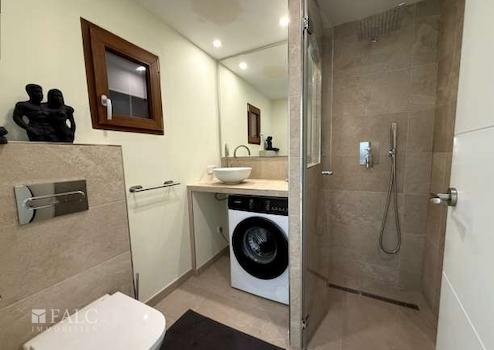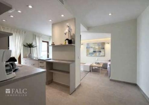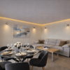 Das durchdachte Gestaltungskonzept überzeugt mit einer harmonischen, hellen Farbwelt in eleganten Greige- und Beigetönen, die den modernen, zeitlosen Charakter der Wohnung unterstreichen und das mediterrane Licht optimal reflektieren.