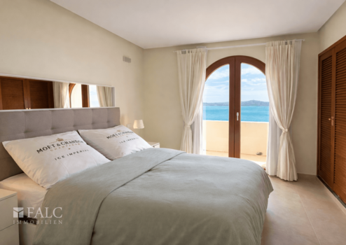 Das großzügige Schlafzimmer verfügt über Zugang zu einer weiteren Terrasse – ideal für ruhige Morgenstunden mit Meeresrauschen.