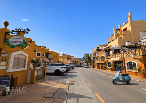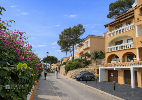 Cala Fornells gilt als einer der malerischsten Teile Pageras. Die mediterrane Architektur mit ihren warmen Naturtönen, versetzten Terrassen und begrünten Fassaden verleiht dem Ort ein fast dorfähnliches, sehr stilvolles Ambiente. Kleine Treppen, Natursteinmauern und liebevoll angelegte Wege prägen das Bild dieser besonderen Küstenlage.