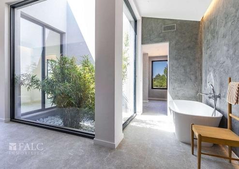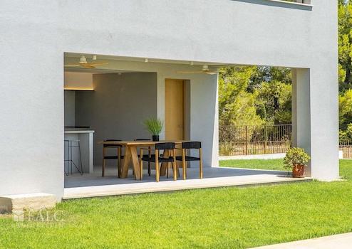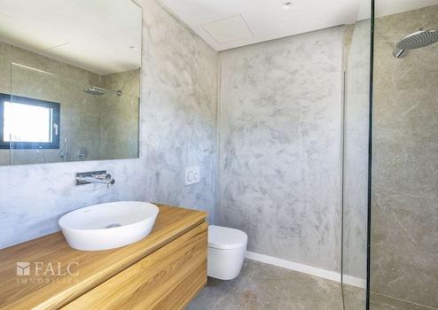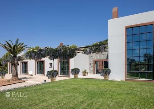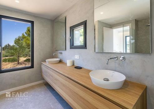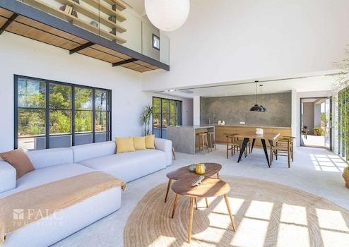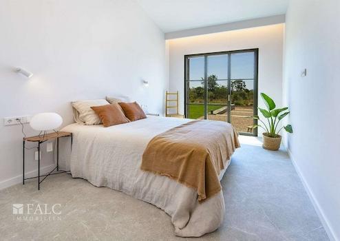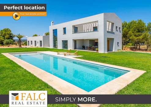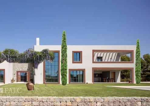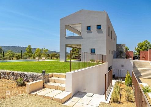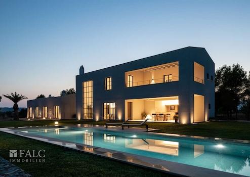 Diese elegante Neubau-Villa in Santa Maria mit Pool spiegelt einen einzigartigen Stil wider. Es wurden bei ihrem Bau nur hochwertige Materialien verwendet, die Naturelemente wie Stein, Holz und Metall miteinander verbinden. Diese Immobilie zeichnet sich durch ihre grossen Fenster aus, die viel Licht hereinlassen.