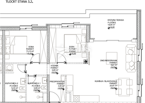 Die Wohnung mit der Bezeichnung 3.2 hat einen funktionalen Grundriss und besteht aus: