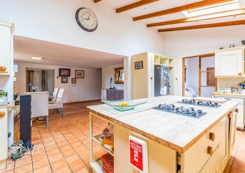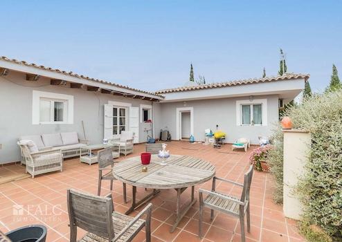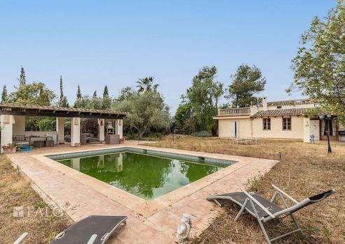 Dieses renovierungsbedürftige Objekt in Santa Maria del Cami befindet sich auf einem ca. 19.273 m2 grossen, umzäunten Grundstück und besteht aus 2 Fincas und einem separaten, renovierungsbedürftigen Gästehaus. Die Fincas sind getrennt, so dass beide völlig privat und individuell sind. Die Einfahrt zum Grundstück erfolgt durch ein automatisches Tor mit Sprechanlage und visueller Kamera. Es gibt einen Parkplatz für 5 Autos und Grünflächen. Die 3 Gebäude befinden sich in einer ruhigen Gegend, nur wenige Kilometer vom Dorf entfernt, mit sicheren Zufahrtswegen, Terrassen, Veranden, Swimmingpool mit überdachtem Grillplatz, Garagen, Büro, Waschküche, 3 Ställen, eigenem Reitplatz und einem Nebengebäude. Die schöne Hauptfinca verfügt über 2 grosse Wohnzimmer, Büro, eine geräumige Küche mit Essbereich, 5 Schlafzimmer, Ankleidezimmer und 4 Bäder. Extras: Insgesamt 11 Schlafzimmer verteilt auf alle Gebäude, Öl-Zentralheizung und Klimaanlage. Santa Maria del Camí ist ein traditionelles Dorf mit authentischen Cafés und Restaurants im Zentrum von Mallorca.