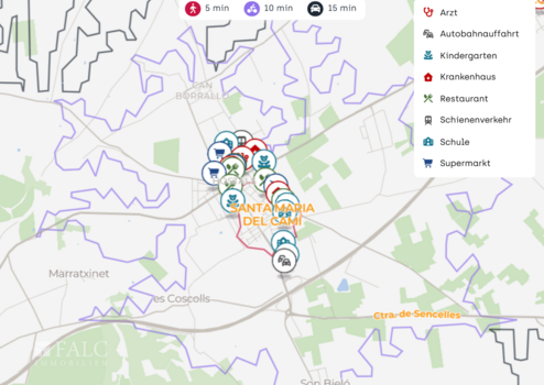 Für den öffentlichen Verkehr ist Santa Maria del Camí ebenfalls gut aufgestellt: Der Bahnhof im Ort bietet eine praktische Verbindung Richtung Palma und ins Inselinnere. Der Flughafen Palma de Mallorca ist mit dem Auto in etwa 20 Minuten erreichbar.