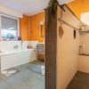 Aktuell befindet sich im Erdgeschoss auf der rechten Seite ein separat gelegenes Schlafzimmer. Links öffnet sich der Wohnbereich mit fließendem Übergang in die Küche und den Essbereich. Von hier aus besteht Zugang in das großzügige moderne Tageslichtbad, das mit einer komfortablen Walk-in-Dusche ausgestattet ist. Direkt angrenzend befindet sich in einem Anbau ein separates WC mit Fenster. Vom Esszimmer aus gelangen Sie in den rückwärtigen Gartenbereich.
