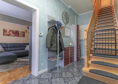 Beim Betreten des Hauses gelangen Sie in eine zentrale Diele, die den Zugang zum Keller, zum Dachgeschoss sowie zu den Räumen des Erdgeschosses erschließt.