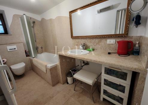 In einer ruhigen, grünen Gegend nahe dem Zentrum von Labin liegt dieses charmante Haus mit 110 Quadratmetern Wohnfläche.