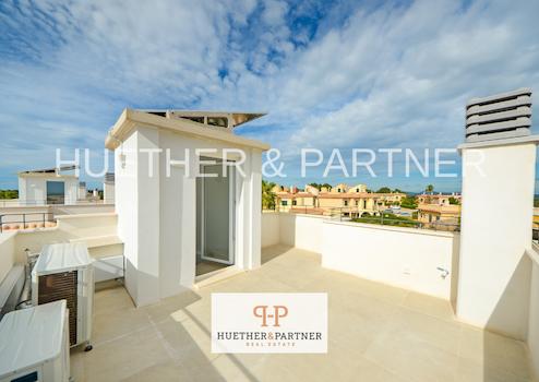 Im Obergeschoss befinden sich zwei komfortable Schlafzimmer sowie ein weiteres stilvolles Duschbad. Von hier aus gelangen Sie über eine platzsparende Wendeltreppe auf die großzügige Dachterrasse – ein perfekter Ort zum Entspannen und Genießen.