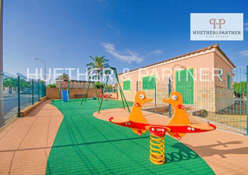 Die gepflegte Gemeinschaftsanlage bietet einen großzügigen Swimmingpool sowie weitläufige Grünflächen, die zum Erholen und Verweilen einladen.