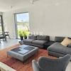 Wir bieten ein geräumiges Haus mit 200 m² Wohnfläche und einem 850 m² großen Garten zur Langzeitmiete an. Das Haus verfügt über drei Schlafzimmer, vier Badezimmer, ein geräumiges Wohnzimmer und eine offene Küche. Ein Schlafzimmer hat Zugang zu einem Balkon, das andere ein eigenes Ankleidezimmer. Glaswände in jedem Zimmer sorgen für viel Tageslicht und eine Verbindung zum begrünten Innenhof, der von einem grünen Zaun umgeben ist und zusätzliche Privatsphäre bietet.