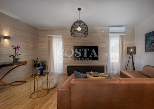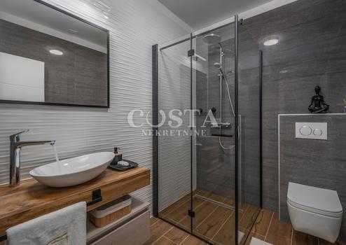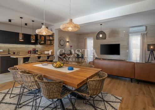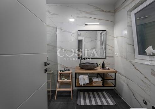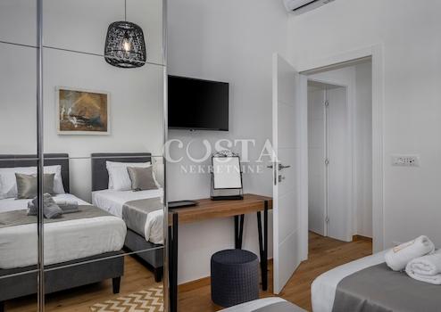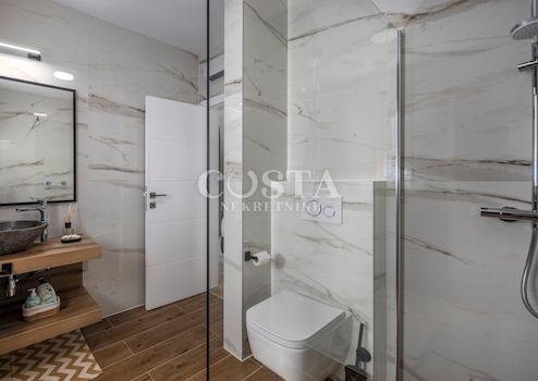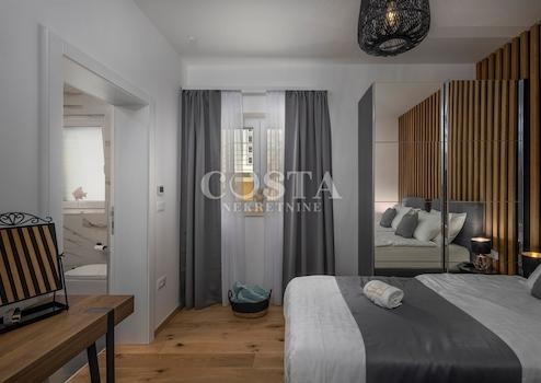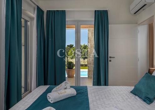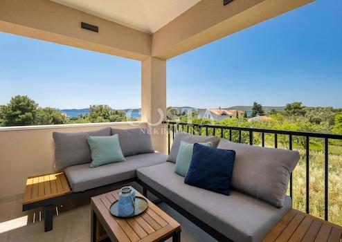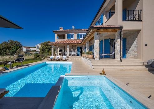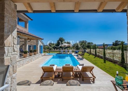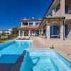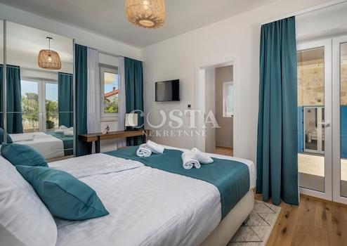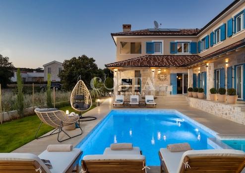 In Ugljan auf der gleichnamigen Insel steht eine luxuriöse Villa mit Pool zum Verkauf. Das Anwesen befindet sich auf einem großzügigen Grundstück von 773 m² und erstreckt sich über ein Erdgeschoss und ein Obergeschoss. Im Erdgeschoss befinden sich ein geräumiges Wohnzimmer, eine Küche mit Essbereich, ein Gäste-WC, ein Abstellraum und zwei Schlafzimmer mit jeweils eigenem Bad. Im Obergeschoss befinden sich ein weiteres Wohnzimmer mit Küche sowie vier Schlafzimmer mit jeweils eigenem Bad und Terrasse.
