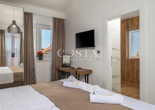 Das Anwesen mit etabliertem Tourismusbetrieb befindet sich in bester Lage, nur 200 m vom Meer entfernt, im Dorf Muline an der Südseite der Insel Ugljan. Cafés und Restaurants befinden sich in unmittelbarer Nähe. Das Zentrum von Ugljan erreichen Sie nach 3 km, und die Stadt Preko, von der aus die Fähre täglich nach Zadar verkehrt, ist 12 km entfernt. Die Insel Ugljan ist bekannt für ihre unberührte Natur, versteckte Buchten und Naturschönheiten sowie die hervorragende Verkehrsanbindung an das Stadtzentrum von Zadar.