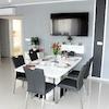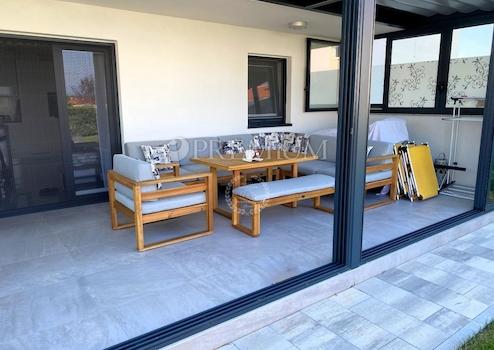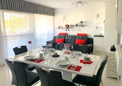 Die Wohnung besteht aus zwei funktional getrennten Einheiten. Die Haupteinheit befindet sich im ersten Obergeschoss und verfügt über eine Wohnfläche von 76,80 m². Sie umfasst einen Eingangsbereich, ein Gäste-WC, ein Badezimmer, zwei Schlafzimmer sowie ein großzügiges Wohnzimmer mit Küche und Essbereich, mit Zugang zu einer überdachten Terrasse von 16 m². Eine elektrische Fußbodenheizung ist mit Ausnahme der Schlafzimmer installiert, und die gesamte Einheit ist klimatisiert, was einen angenehmen Aufenthalt das ganze Jahr über ermöglicht.