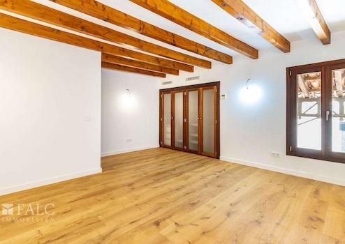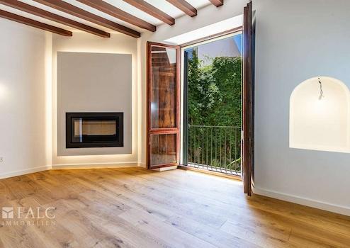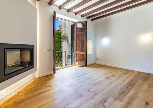 In der historischen Altstadt gelegen, präsentieren wir diese schöne Wohnung in einem der attraktivsten Altstadtpaläste Palmas. Das historische Gebäude und die eleganten Wohnungen wurden im Jahr 2020 mit hochwertigen Materialien fertiggestellt und sind sofort bezugsfertig. (Küche mit Schätzung von 15.000 € im Preis enthalten). Diese luxuriöse Wohnung befindet sich im 1. Stock, der bequem über einen Aufzug zu erreichen ist und bietet ein geräumiges Wohn-/Esszimmer, die im Preis enthaltene Küche, 2 geräumige Schlafzimmer und 3 Bäder auf einer bebauten Fläche von ca. 212 m2. Eines der Schlafzimmer lässt sich aufgrund der Grösse teilen, um ein weiteres Schlafzimmer zu realisieren. Ein privater Stellplatz in der gemeinschaftlichen Tiefgarage ist ebenfalls vorhanden. Weitere Merkmale: Fußbodenheizung, doppelt verglaste Fenster, rustikale Holzdeckenbalken, Parkettböden, Kamin und vieles mehr. Dies ist eine einmalige Gelegenheit, in der Altstadt von Palma zu wohnen.