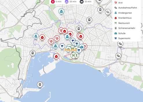 Freizeit und Kultur beginnen praktisch vor der Haustür. Das Theater Ses Voltes liegt in ca. 200 m Entfernung, das Teatre Principal erreichen Sie in ca. 500 m. Wer gern aktiv bleibt, findet mit Pro Sport ein Fitnessstudio in ca. 650 m sowie weitere Sport und Wellnessangebote im näheren Umfeld.