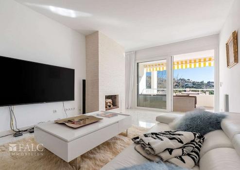 Dieses renovierte Apartment in Santa Ponsa mit Teilmeerblick befindet sich in einer sehr guten Wohngegend im begehrten Südwesten Mallorcas. Die moderne Immobilie befindet sich im 1. Stock eines gepflegten Gebäudes und verfügt über eine Wohnfläche von ca. 80 m2 inklusive einer fantastischen Terrasse, um die spektakuläre Aussicht und das mediterrane Klima zu geniessen. Die wunderschöne Wohnung ist aufgeteilt in ein helles Wohnzimmer mit Kamin und eine tolle offene und voll ausgestattete Küche mit Kochinsel, sowie 2 geräumige Schlafzimmer mit Einbauschränken und 2 Bäder. Das Wohnzimmer und das Hauptschlafzimmer bieten Zugang zu der herrlichen Sonnenterrasse von ca. 16 m2. Extras: Klimaanlage, Fussbodenheizung, doppelverglaste Fenster, automatische Rollläden, Marmorboden, Waschküche und Satellitenfernsehen. Ein Parkplatz und die Möbel sind im Preis inbegriffen. Santa Ponsa zeichnet sich durch 3 Golfplätze und 2 Yachthäfen aus.
