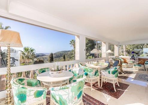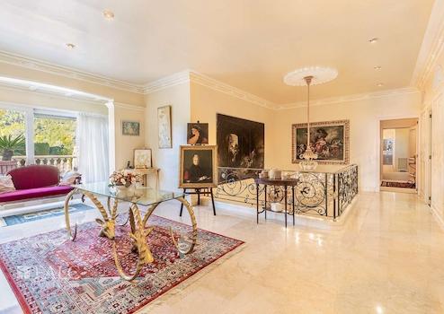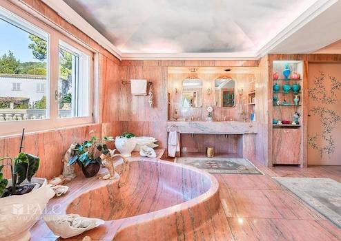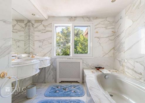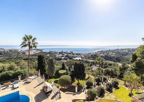 Dieses exklusive Anwesen in Genova beeindruckt durch eine atemberaubende Aussicht auf die gesamte Bucht von Palma und bietet viel Privatsphäre, profitiert dennoch von einer perfekten Infrastruktur. Der Flughafen, der luxuriöse Yachthafen Puerto Portals sowie die Golfplätze Bendinat und Son Vida sind nur wenige Autominuten entfernt. Die grosszügige bebaute Fläche von ca. 1.530 m2 sind folgendermassen aufgeteilt: eine elegante Eingangshalle, ein luxuriöses Wohnzimmer mit Kamin, eine Bibliothek, zwei Küchen, ein Esszimmer, eine Winterlounge, sowie 2 Schlafzimmer mit Bädern en suite im Erdgeschoss. Die erste Etage bietet das Masterschlafzimmer mit Bad en Suite und Ankleide, sowie 2 weitere Schlafzimmer und ein Büro. Im zweiten Stock befindet sich ein zusätzliches Schlafzimmer mit Bad en Suite, sowie Zugang zur Terrasse mit Meerblick. Des Weiteren, gibt es ein separates Gästehaus und ein Apartment für Hauspersonal. Der charmante Aussenbereich mit einem herrlichen Garten mit exotischen Pflanzen mit Obstbäumen, schöne Terrassen mit Panoramablick auf das Meer und Pool laden dazu ein das magische mediterrane Ambiente in vollen Zügen zu geniessen. Die Ausstattungsmerkmale dieser herrlichen Villa in Palma záhlen: Klimaanlage, Gaszentralheizung, doppelt verglaste Fenster, sowie Marmorböden. Geniessen Sie die atemberaumbende Ausblicke und das herrliche Ambiente Mallorcas in absoluter Ruhe!