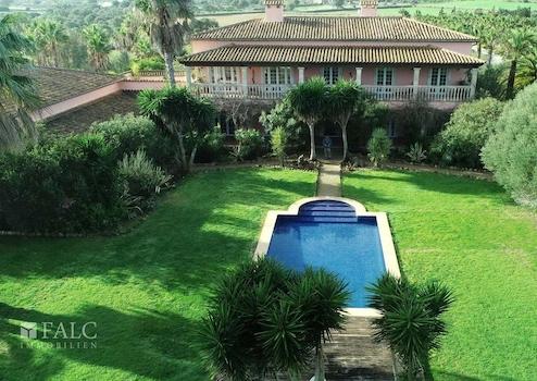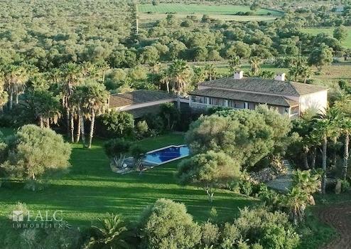 Diese herrliche Finca in Santa Margalida bietet viel Privatsphäre, einen wunderschönen Weitblick auf das Meer und die Berge und befindet sich in einer sehr ruhigen Wohngegend, nur ca. 15 Autominuten von dem nächsten schönen Strand mit kristallklarem Wasser entfernt. Die exklusive Immobilie steht auf einem riesigen Grundstück von ca. 151.000 m2 und verfügt über eine grosszügige bebaute Fläche von ca. 1250 m2, die folgendermassen aufgeteilt sind: 2 elegante Wohnzimmer mit Zugang zu Terrassen, 2 Küchen, 8 geräumige Schlafzimmer, 5 Badezimmer, ein Weinkeller, sowie ein Abstellraum. Des Weiteren, verfügt die Finca über ein Gästehaus mit eigener Küche. Der bezaubernde Aussenbereich mit einem wunderschönen Garten mit Palmen, verschiedenen Pflanzen und einem fabelhaften Salzwasserpool lädt dazu ein, die absolute Ruhe, herrliche Aussicht, sowie das magische mediterrane Ambiente auf der Insel in vollen Zügen zu geniessen. Zu den Ausstattungsmerkmalen dieser exklusiven Finca in Santa Margalida zählen: Klimaanlage, Fussbodenheizung, vierfach verglaste Fenster, Terrakottaböden und 3 Kamine. Zur Verfügung steht eine Garage mit Platz für zwei Fahrzeuge, sowie Parkplätze im Freien. Es handelt sich um eine sehr ruhige Gegend, umgeben von Natur und nah am Meer. Der nächste Golfplatz in Pollensa ist ca. 30 Autominuten entfernt.