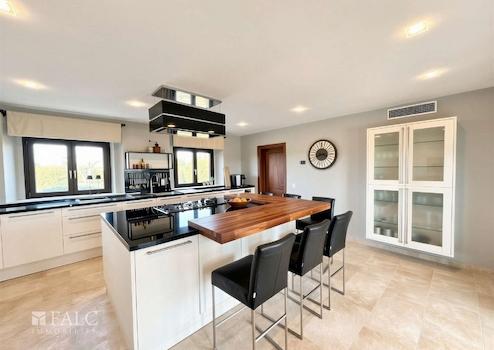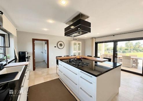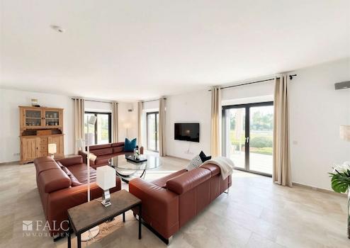 Ein besonderes Highlight des Hauses ist die hochwertige Einbauküche aus Deutschland, ausgestattet mit erstklassigen Markenkomponenten wie Berbel, die sowohl optisch als auch funktional höchsten Ansprüchen genügt. Von den Wohnbereichen aus öffnen sich mehrere Balkone und Terrassen, die den Innen- und Außenbereich fließend miteinander verbinden. Insgesamt stehen drei Balkone und vier Terrassen zur Verfügung, die vielfältige Rückzugs- und Aufenthaltsmöglichkeiten bieten.