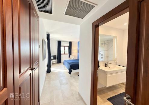 Die Finca wurde in massiver Bauweise errichtet und greift typische mallorquinische Architekturelemente auf, die zeitlos interpretiert wurden. Hochwertige dreifach verglaste Sicherheitsfenster mit Aluminiumrahmen sorgen nicht nur für exzellente Energieeffizienz, sondern auch für lichtdurchflutete Innenräume und ein angenehmes Raumklima. Fußbodenheizung, Klimaanlagen sowie ein Kamin garantieren höchsten Wohnkomfort zu jeder Jahreszeit. Ergänzt wird die technische Ausstattung durch ein modernes SMART-Home-System. Die Installation einer Alarmanlage ist vorbereitet, ebenso wie eine zukünftige Photovoltaikanlage.