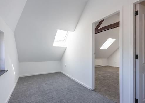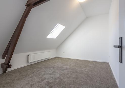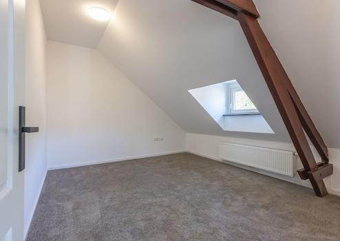 Das ausgebaute Dachgeschoss ist über eine feste Treppe zugänglich. Hier befinden sich zwei weitere Schlafzimmer mit ca. 14 m² und 11 m², ebenfalls mit Teppichboden versehen.
