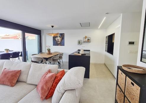 Die zentrale Lage ermöglicht einfachen Zugang zu allen Annehmlichkeiten des täglichen Lebens, darunter Supermärkte, Restaurants, Parks und Sporteinrichtungen, sowie das nahegelegene Einkaufszentrum Dos Mares. Traumhafte Strände und geschützte Naturgebiete sind nur wenige Minuten entfernt, während Golfenthusiasten auf nahegelegene Plätze wie Roda Golf, Lo Romero oder La Serena Golf zugreifen können. Die hochwertigen Materialien und das moderne Design der Villa schaffen ein elegantes, helles Wohnambiente, das mediterrane Lebensqualität, Komfort und Funktionalität harmonisch vereint.