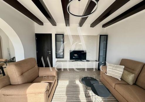Vor der Wohnung befindet sich eine zusätzliche Terrasse mit großem Tisch, und die Wohnung ist nach Süden ausgerichtet.