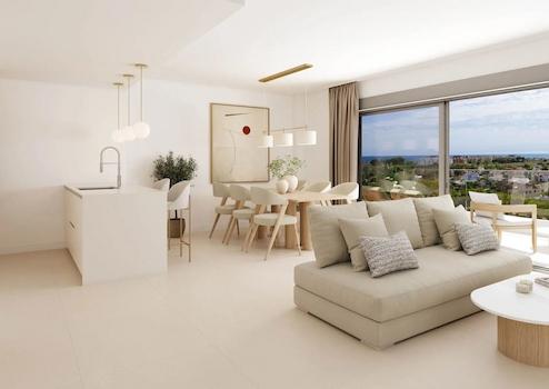Appartements mit 2 Schlafzimmern, 2 Bädern, Klimaanlage, Fußbodenheizung in Bädern, Kfz-Stellplatz und Gemeinschaftspool nur 500 m vom Strand