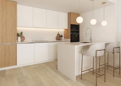 Zur Ausstattung der Wohneinheiten gehören unter anderem Aluminium- oder PVC-Fenster mit Doppelverglasung, Rollläden in Schlafzimmern, Sicherheitstüren, moderne Einbauküchen mit Induktionskochfeld, Backofen, Mikrowelle und Dunstabzugshaube, Einbauschränke in den Schlafzimmern, Klimaanlage, Badezimmer mit Möbeln, Spiegel, Fußbodenheizung und Duschtrennwand (nur im Hauptbadezimmer) und eine aerothermische Anlage für die Warmwassererzeugung. Zu jeder Wohneinheit gehört ein Kfz-Stellplatz innerhalb der Wohnanlage und es ist selbstverständlich auch ein Gemeinschaftspool vorhanden.