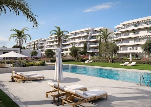 Appartements mit 3 Schlafzimmern, 2 Bädern, Klimaanlage, Fußbodenheizung in Bädern, Kfz-Stellplatz und Gemeinschaftspool nur 500 m vom Strand