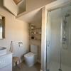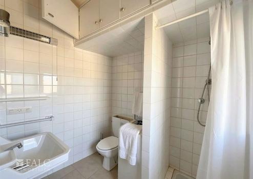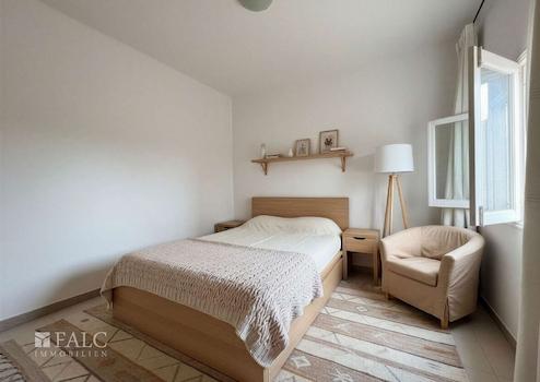 Das Schlafzimmer ist ruhig gelegen und bietet genügend Fläche für ein Doppelbett und Stauraum. Das Badezimmer ist mit Dusche, WC und Waschtisch ausgestattet und funktional angelegt.
