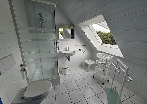 Das Ferienhaus *** ist an unser Haus im L-Anbau mit eigener Terrasse. Im EG ist eine eigene Terrasse mit Gartenmöbel, Sonnenschirm. Parkplatz direkt vor der Terrasse. Küche ist komplett ausgestattet, Esstisch und Sitzplätze. Wohnbereich mit Sofa, TV (SAT). Im OG Schlafzimmer mit Bett 180 x 200. Bad mit Dusche, Lavabo und WC.