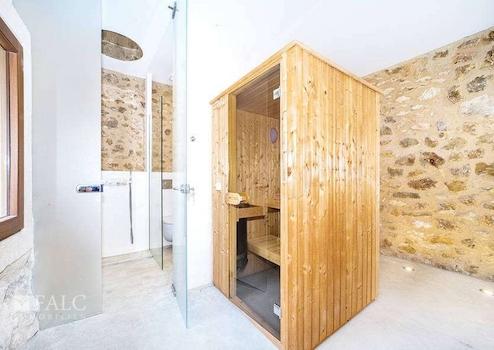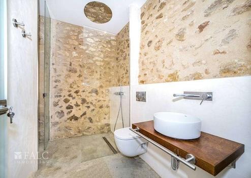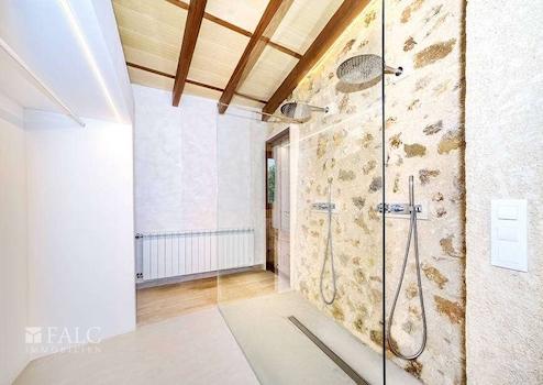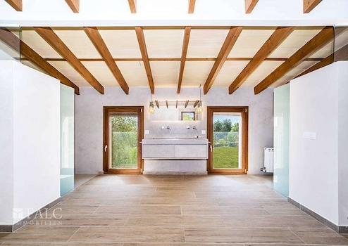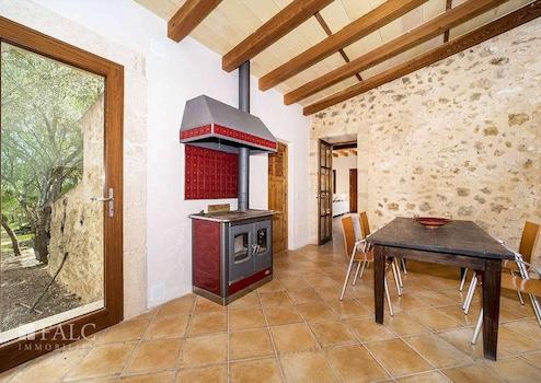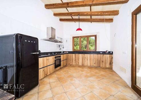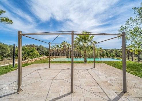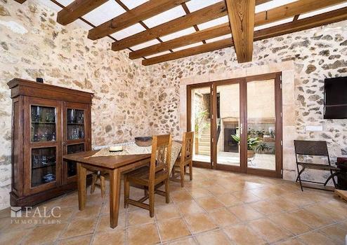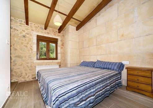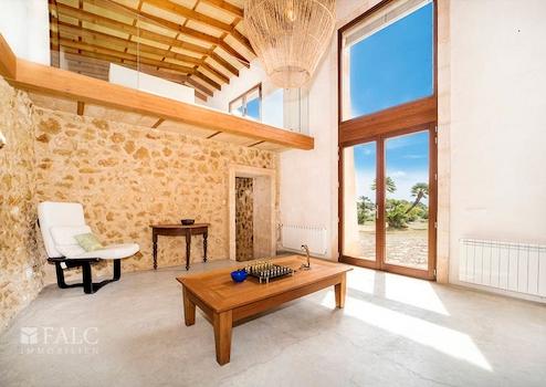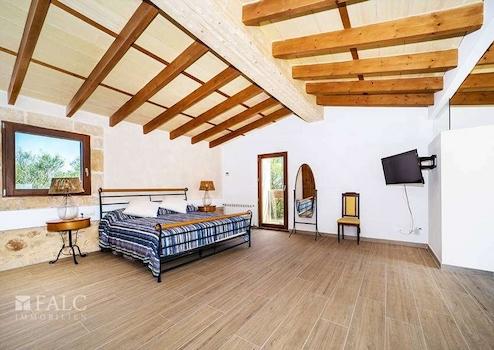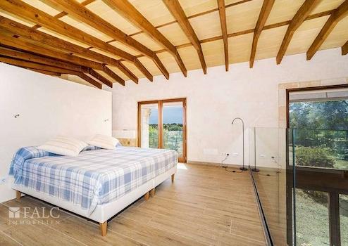 Diese wunderschöne Natursteinfinca bei Manacor liegt inmitten der Natur, bietet viel Ruhe und ist nur 10 Autominuten von einem fabelhaften Strand mit kristallklarem Wasser entfernt, im Südosten der Insel Mallorca. Die attraktive mallorquinische Immobilie wurde 2018 komplett renoviert und steht auf einem Grundstück von ca. 18.000 m2 mit Obstbäumen, Palmen und Olivenbäumen. Die bebaute Fläche von ca. 440 m2 verteilen sich wie folgt: Das Erdgeschoss besteht aus einem wunderschönen Eingangsbereich mit Glasdecke, einem Wohnzimmer mit Kamin, einer Küche, 2 Schlafzimmern mit Badezimmern en suite und einem Raum, welcher als Fitnessraum oder ein Spielraum genutzt werden kann. Die erste Etage bietet 2 Schlafzimmer, eines mit eigenem Bad und mit Balkon. Der charmante Aussenbereich besticht durch einen traumhaften Pool umgeben von Palmen und einen Garten mit Obstbäumen, der dazu einlädt, die wundervolle mediterrane Atmosphäre der sonnigen Insel Mallorca zu geniessen. Diese attraktive Finca in Manacor ist mit Klimaanlage, doppelt verglasten Climalit Fenstern, automatischer Gartenbewässerung und Steinzeugböden ausgestattet. Es handelt sich um eine idyllische Lage, die viel Privatsphäre und Ruhe bietet. Herrliche Strände mit türkisfarbenem Wasser sind nur wenige Autominuten entfernt.