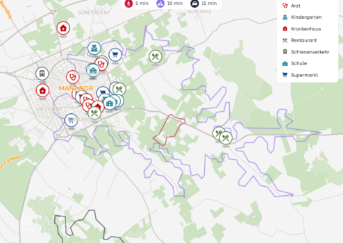 Auch die Mobilität überzeugt: Bushaltestellen wie Rambla Rei en Jaume und Av. Parc - Baix d'es Cos sind in der Nähe und erleichtern den Weg in die Stadt und darüber hinaus. Der Bahnhof Manacor ist ebenfalls gut erreichbar und bietet eine zusätzliche Anbindung für Pendler und Ausflüge. Für Autofahrer ist die Versorgung mit Tankstellen wie Repsol sowie Parkmöglichkeiten in der Umgebung praktisch. E Ladepunkte befinden sich ebenfalls in der Nähe und unterstützen eine moderne, flexible Mobilität.