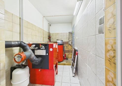 Im Erdgeschoss befinden sich ein Schlafzimmer, ein Heizraum, eine Küche sowie ein Wohnzimmer.
