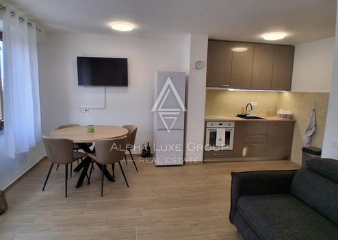 Die Immobilie wurde im Jahr 2025 vollständig renoviert, einschließlich neuer Elektro und Wasserinstallationen, neuer PVC Fenster, Aluminiumläden, moderner Keramikböden, Klimaanlage sowie komplett neuer Innenausstattung mit Möbeln und Geräten. Die Aufteilung umfasst einen Eingangsbereich, ein Schlafzimmer, Badezimmer, Küche mit Essbereich, Wohnzimmer und Balkon mit zusätzlichem Außenraum.