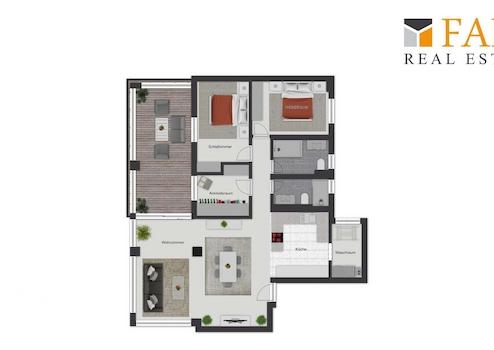 Diese 4 Zimmer Wohnung mit ca. 99 m² Gesamtfläche verbindet einen klaren, modernen Innenausbau mit großzügigen Außenflächen. Das Gebäude stammt aus dem Baujahr 1970, die Wohnung präsentiert sich jedoch in zeitgemäßem Zustand mit durchdachten Details und einem stimmigen Materialkonzept.