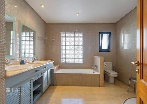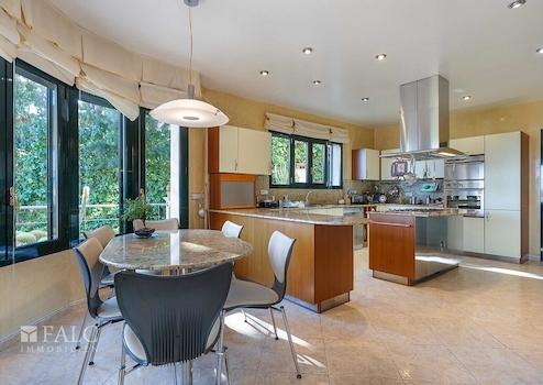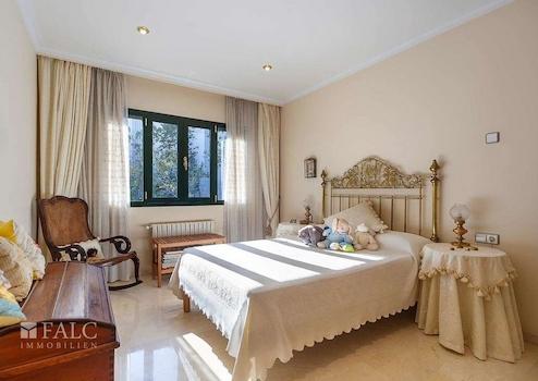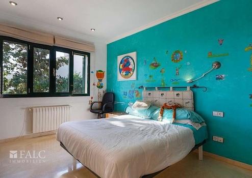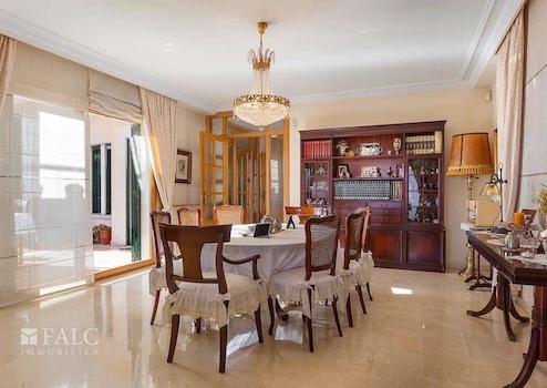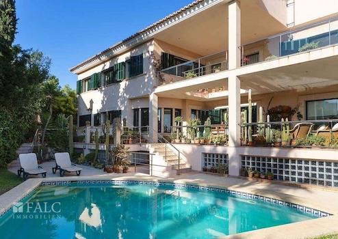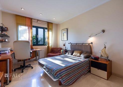 Schönes Chalet in Palma mit Panoramablick über die Stadt Palma im Viertel Son Dureta. Von hier aus genießen Sie einen schönen Blick auf die Kathedrale und das Meer. Das Chalet besteht aus 4 Doppelzimmern, alle mit Einbauschränken sowie 4 Badezimmern, eines davon en suite mit Dusche und Badewanne und die anderen mit Dusche und Bidet. Das Objekt erstreckt sich über drei Etagen. Der Eingang führt zum Wohnzimmer und zu einer schönen Sonnenterrasse, die nach außen mit dem Pool und auf der rechten Seite zur großen hellen Küche führt. Im ersten Stock finden Sie 4 Schlafzimmer und 3 Badezimmer sowie viele Einbauschränke. Auf der Südseite des Hauses befindet sich der Eingang zur großen, hellen Terrasse mit außergewöhnlichem Blick. Im Untergeschoss gibt es eine Garage mit 4 Plätzen, ein weiteres Badezimmer mit Dusche und einen großen Raum für ein Büro oder einen Fitnessraum. Das Chalet wurde 2000 erbaut und ist mit Marmorfliesenböden ausgestattet. Son Dureta ist ein Stadtteil von Palma de Mallorca.
