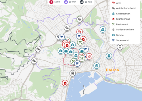 Auch die Nahversorgung ist überzeugend. Ein Supermarkt wie Eroski ist in der Nähe, dazu kommen mehrere Bäcker wie Cerdà sowie Cafés wie Triana für den schnellen Kaffee oder das Frühstück außer Haus. Für die medizinische Versorgung stehen Apotheken wie Son Espanyolet sowie die Clínica Juaneda und weitere Arztangebote im nahen Umfeld zur Verfügung.