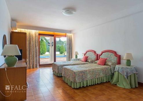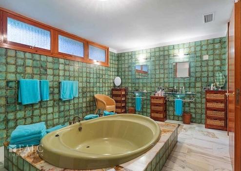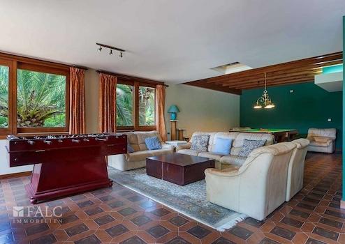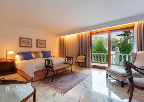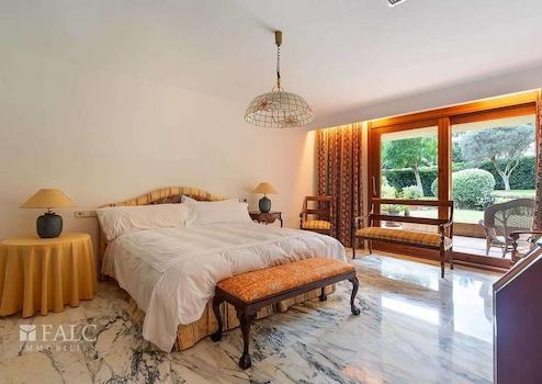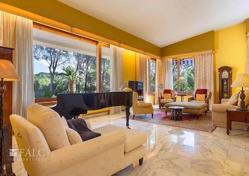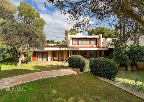 Diese bezaubernde Villa in Son Vida mit Blick auf den Golfplatz befindet sich auf einem ebenerdigen ca. 2385 m2 grossen Grundstück. Das Anwesen verfügt über eine beeindruckende Wohnfläche von ca. 1044 m2 aufgeteilt in 2 geräumige Ebenen, sowie einem kleinen Dachboden, der derzeit als Ruhebereich genutzt wird. Die Villa ist in 7 Doppelschlafzimmer mit Einbauschränken, 7 Badezimmer, eine Sauna und einen Unterhaltungsraum unterteilt. Im 1. Stock finden wir ein grosszügiges Wohnzimmer mit Kamin und Zugang zu einer schönen Terrasse mit Blick auf den Golfplatz und den Poolbereich, sowie ein Esszimmer, eine ausgestattete Küche und die Dachterrasse von ca. 60 m2. Der Aussenbereich dieser fantastischen Villa besticht durch seinen hübschen Pool, umgeben von Naturrasen mit schattenspendenden Palmen. Die Extras dieser Immobilie sind: Klimaanlage, Zentralheizung, doppelt verglaste Fenster, ein Abstellraum und eine Garage für 2 Autos. Son Vida ist eine der luxuriösesten Wohngegenden Mallorcas.