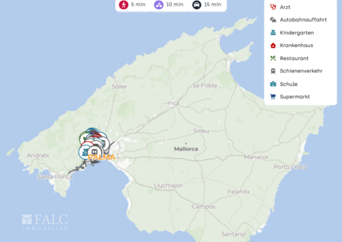 Insgesamt verbindet die Lage ein ruhiges Wohngefühl mit kurzen Wegen zu Einkauf, Gastronomie, Golf und Strand sowie einer sehr guten Erreichbarkeit von Palma.