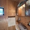 Das Hauptwohngeschoss präsentiert sich als offener Wohnbereich mit Küche und Esszimmer, einem Schlafzimmer und einem Badezimmer. Vom Wohnzimmer gelangt man auf eine großzügige Terrasse mit freiem Blick auf die geschützte und unberührte Waldlandschaft. Im Dachgeschoss befinden sich drei weitere Schlafzimmer und ein Badezimmer.