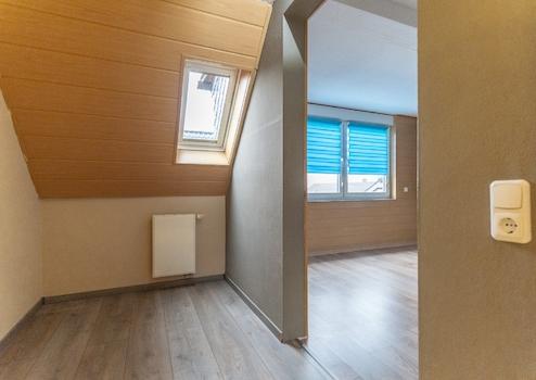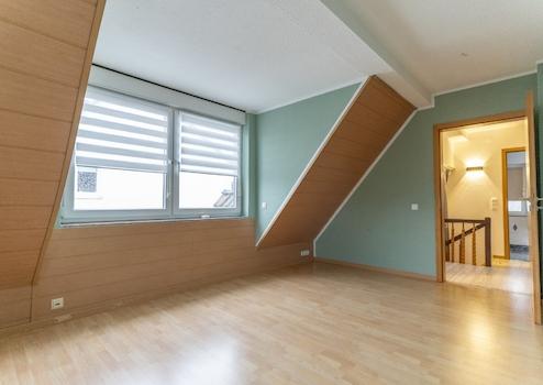 Über die Treppe im Eingangsbereich gelangen Sie in das 2. Obergeschoss. Die Diele auf dieser Ebene bietet Platz für einen kleinen Arbeitsbereich und erschließt alle weiteren Räume sowie den Zugang zum Spitzboden, der zusätzliche Abstellfläche zur Verfügung stellt.