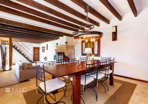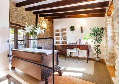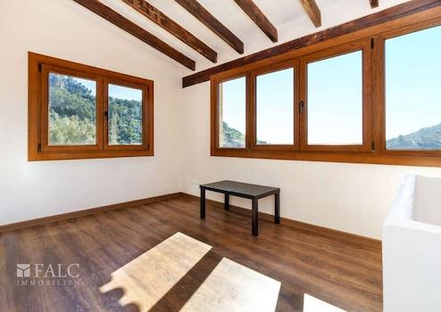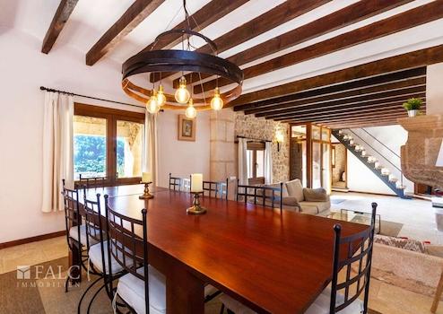 Diese wunderschöne rustikale Finca in Bunyola bietet einen fabelhaften Ausblick auf das Tramontana-Gebirge und befindet sich in einer idyllischen und ruhigen Lage inmitten der Natur. Hier kann man das schöne mediterrane Ambiente, viel Privatsphäre und absolute Ruhe genießen. Die herrliche, nach Süden ausgerichtete Immobilie besticht durch eine großzügige Raumverteilung und charaktervolle Natursteinwände. Die Wohnfläche von ca. 300 m2 verteilen sich auf 3 Ebenen wie folgt: ein großes Wohn- / Esszimmer mit Kamin und mit Holzdeckenbalken dekorierter Decke, eine möblierte und ausgestattete Küche, 5 geräumige Schlafzimmer, 3 Badezimmer, sowie ein Abstellraum. Zu den Extras dieser charmanten Finca in Bunyola zählen: Klimaanlage warm/ kalt, doppelt verglaste Holzfenster, sowie Naturstein- und Holzböden. Die Immobilie bietet ca. 1000 m2 Terrassen, einen fantastischen Pool, wo Sie die heißen Tage auf Mallorca genießen können, sowie wunderschöne Gärten mit Obstbäumen. Die Finca ist nur 15 Autominuten von der Hauptstadt Palma de Mallorca entfernt.