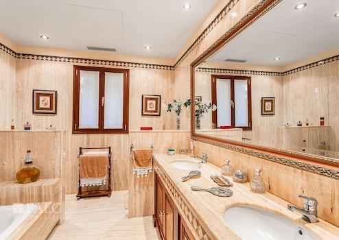 Diese herrliche Villa in Son Veri Nou besticht durch ihre Eleganz, großzügige Raumaufteilung, hohe Decken im Eingangsbereich und traumhaften Meerblick. Die wunderschöne, südlich ausgerichtete Immobilie bietet direkten Meerzugang und steht auf einem Grundstück von ca. 1000 m2. Die bebaute Fläche von ca. 300 m2 verteilen sich auf 3 Etagen wie folgt: 3 elegante Wohnzimmer mit Zugang zu einer schönen Terrasse mit spektakulärer Aussicht, 2 Küchen, 5 luxuriöse Schlafzimmer, 5 geräumige Badezimmer, ein Ankleideraum, eine Waschküche, sowie 3 Toiletten. Im Außenbereich befindet sich ein fantastischer Pool, von welchem aus Sie ebenfalls einen herrlichen Blick aufs Meer genießen können. Zu den Extras dieser einzigartigen Villa in Son Veri Nou zählen: Klimaanlage warm/ kalt, doppelt verglaste Fenster, Marmorböden und ein Aufzug. Eine aussergewöhnliche Immobilie, die keine Wünsche offen lässt!
