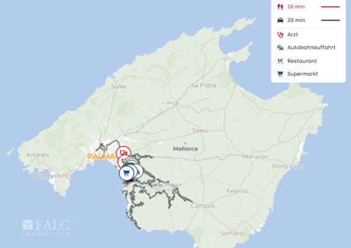 Insgesamt bietet die Lage eine ausgewogene Mischung aus Nahversorgung, Freizeitmöglichkeiten und schneller Anbindung ideal für alle, die auf Mallorca komfortabel wohnen und flexibel unterwegs sein möchten.