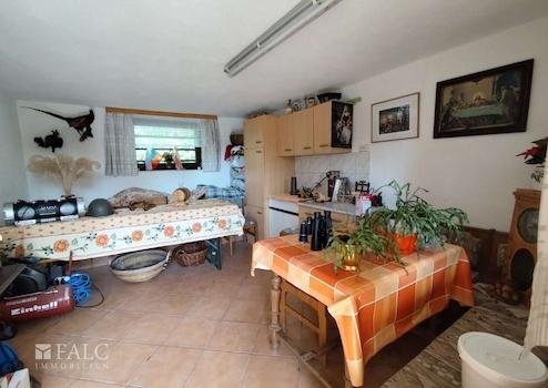 Zu den Nebengebäuden gehören eine Sommerküche, eine Garage, ein Lagerraum mit separater Toilette. Durch Umbau oder Modernisierung können daraus zusätzliche Wohn- oder Gemeinschaftsräume entstehen. Der separate Werkstattbereich ist mit Drehstrom ausgestattet, sodass Werkzeuge, Sägen oder andere Maschinen problemlos betrieben werden können. Das Abwasser wird in eine betonierte Sammelgrube geleitet. (Anschluss an Kanalisation und Erdgasnetz besteht in der Gemeinde nicht.)